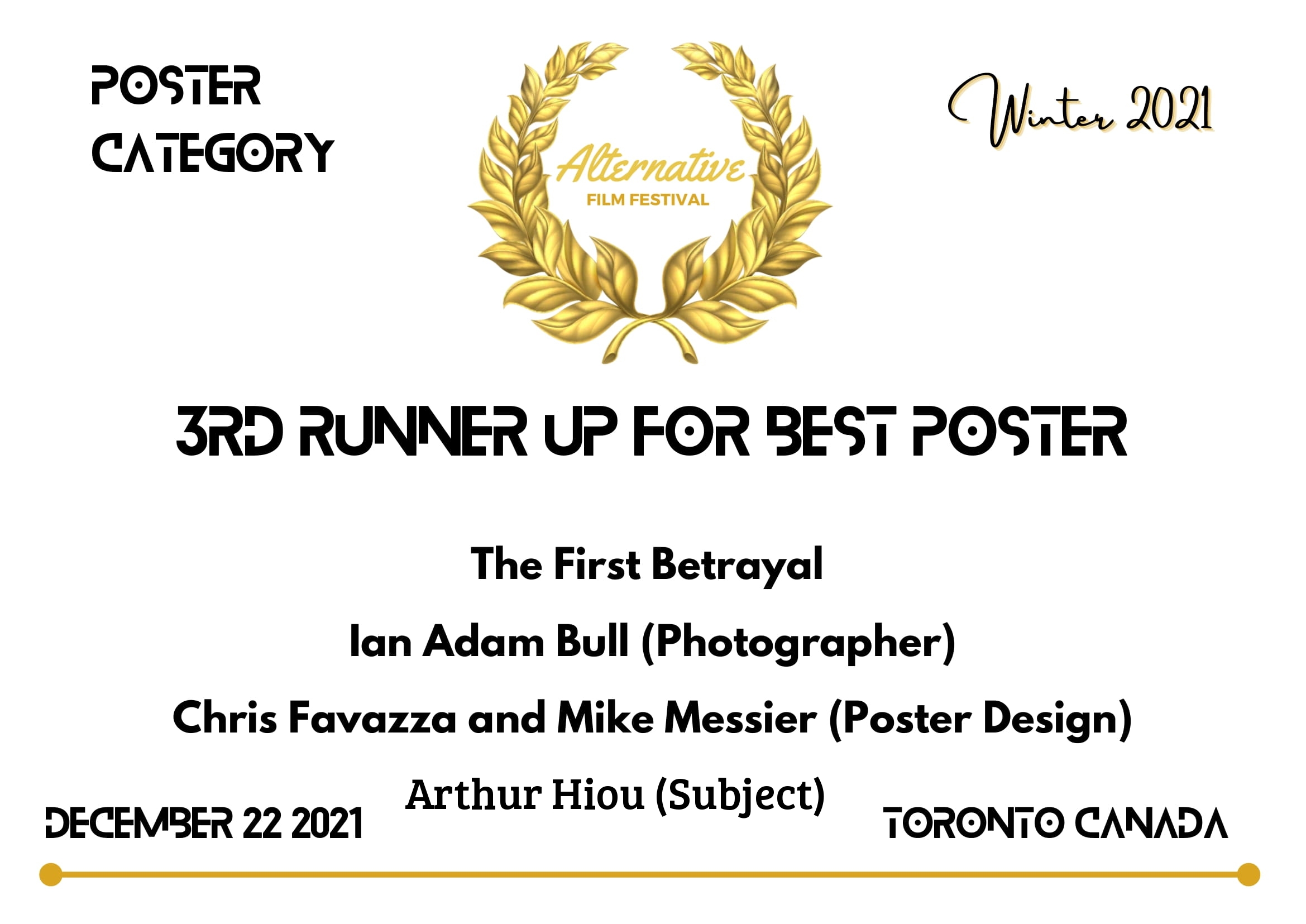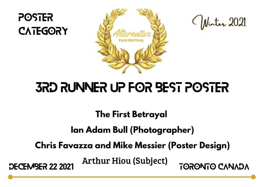 12/25/2021 – An early Christmas present came to us in the form of a nice accolade from the Alternative Film Festival for The First Betrayal promotional poster. More info and ALTFF Winners are here: https://www.instagram.com/alternativefilmfestival/