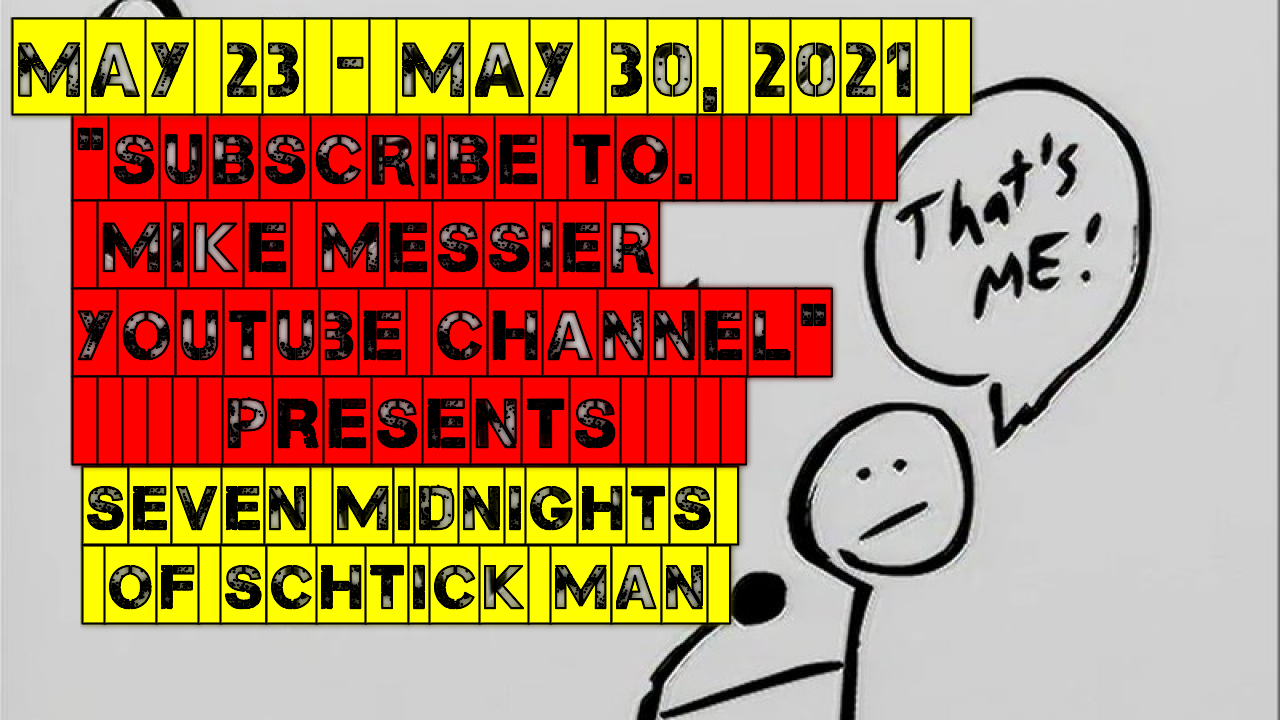 Subscribe to Mike Messier YouTube Channel presents a special event: Seven Midnights of Schtick Man, celebrating the life and times of the World’s most controversial stick figure comedian, the somewhat legendary SCHTICK MAN!